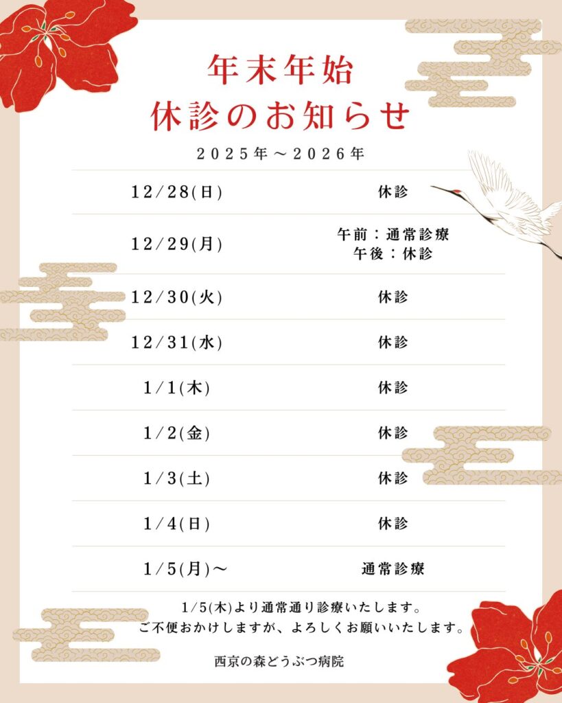 山口市の動物病院 西京の森どうぶつ病院からのお知らせです