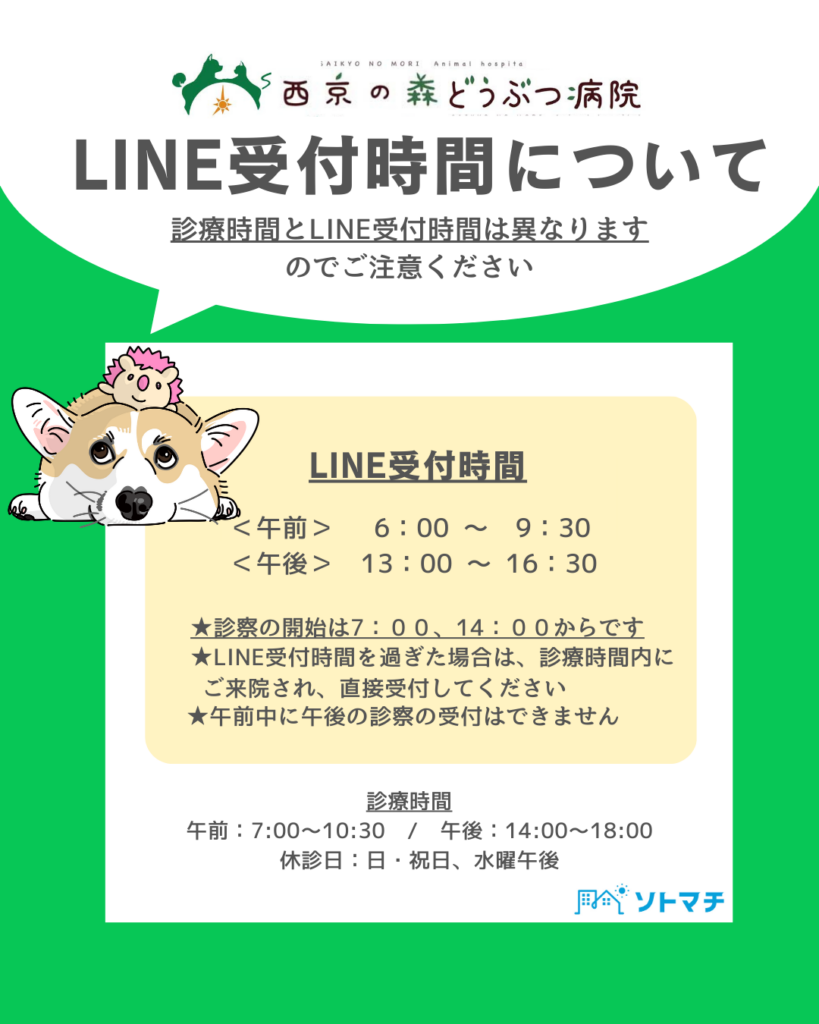 待合室での混雑および駐車場の不足を改善するため、LINEを用いた受付システムを導入いたしました。ご自宅から順番受付が可能となります。詳しくは「LINE受付について」をご覧ください。